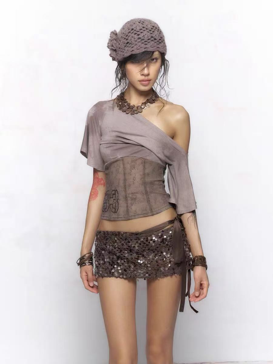 Asymmetric Lace & Lurex Top