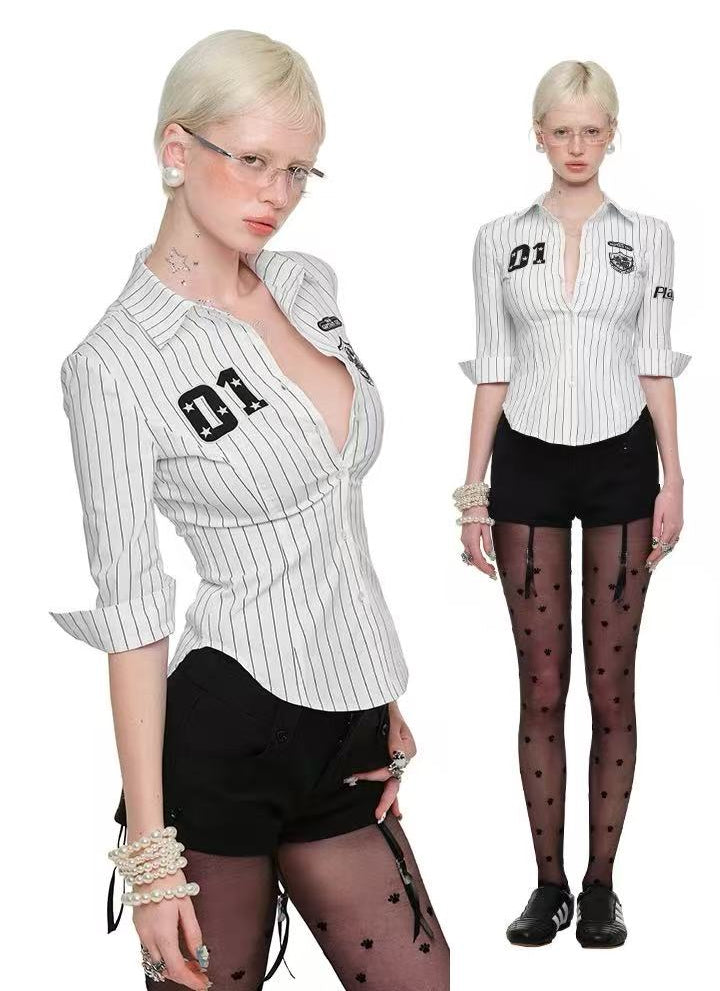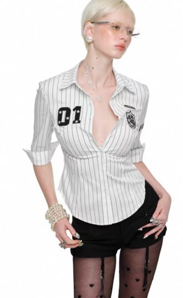 Black and White Vertical Striped Shirt