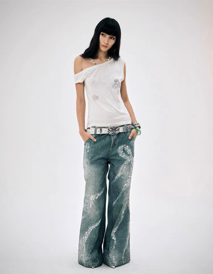 Bow-print Wide-leg Pants