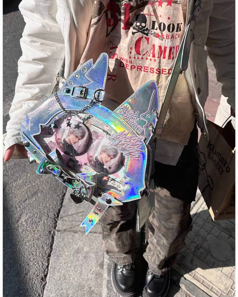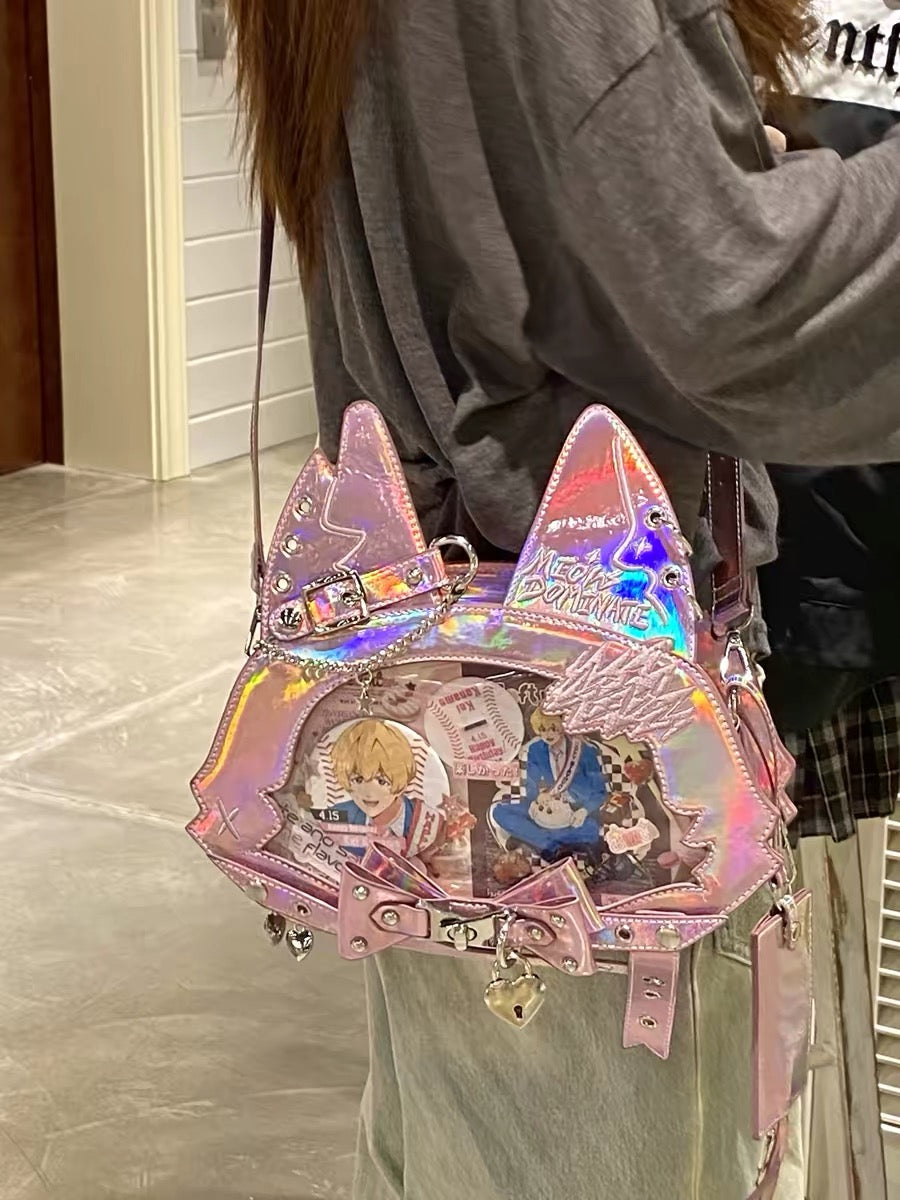• Bow + heart-shaped lock closure for sweet-cool contrast
