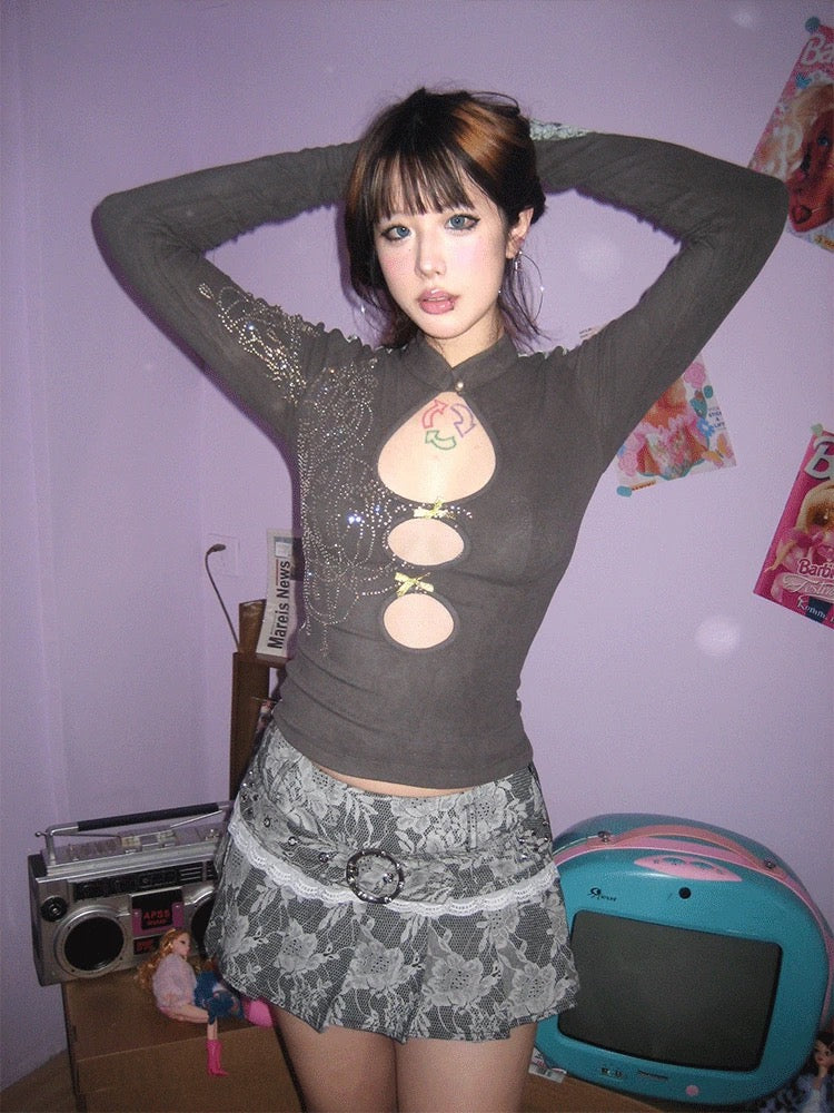 Chandelier Print Top With Chest Cutout