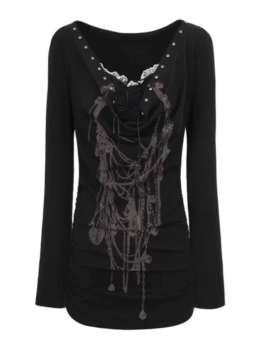 Doodle Print Lace Panel Top