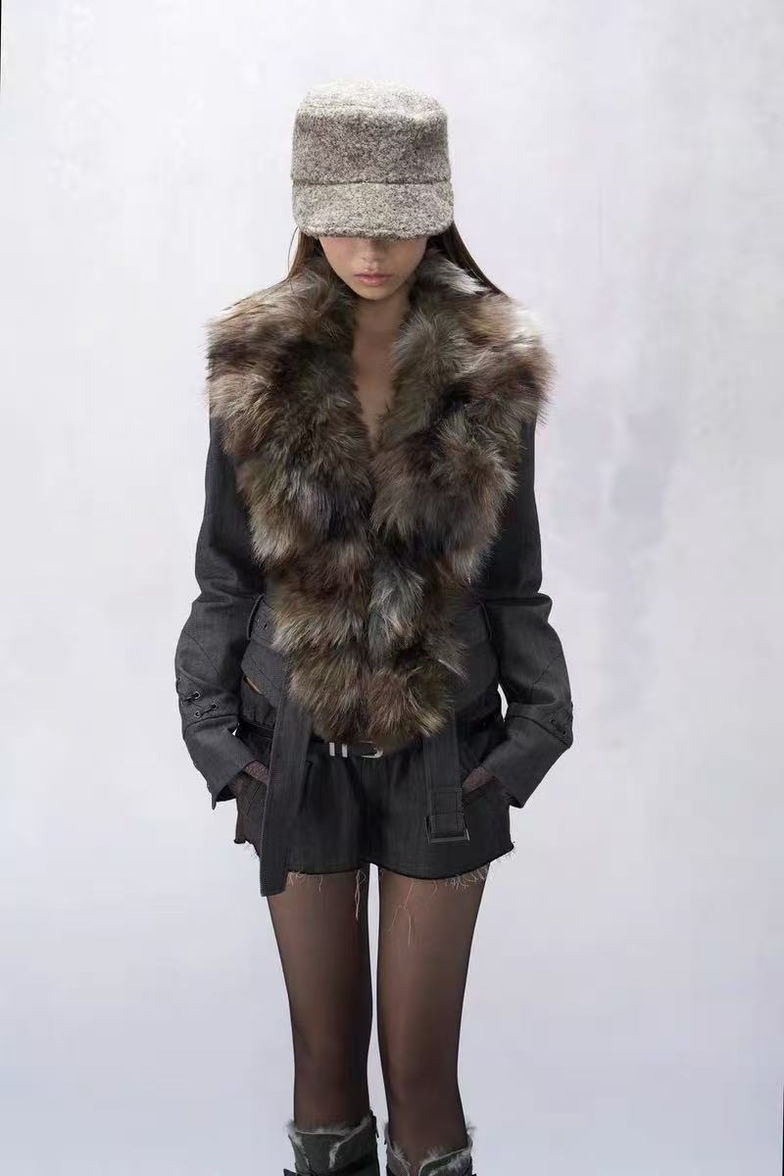 • The Convertible Maverick: Detachable Fur-Collar Denim Blazer