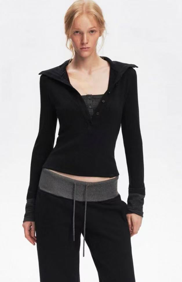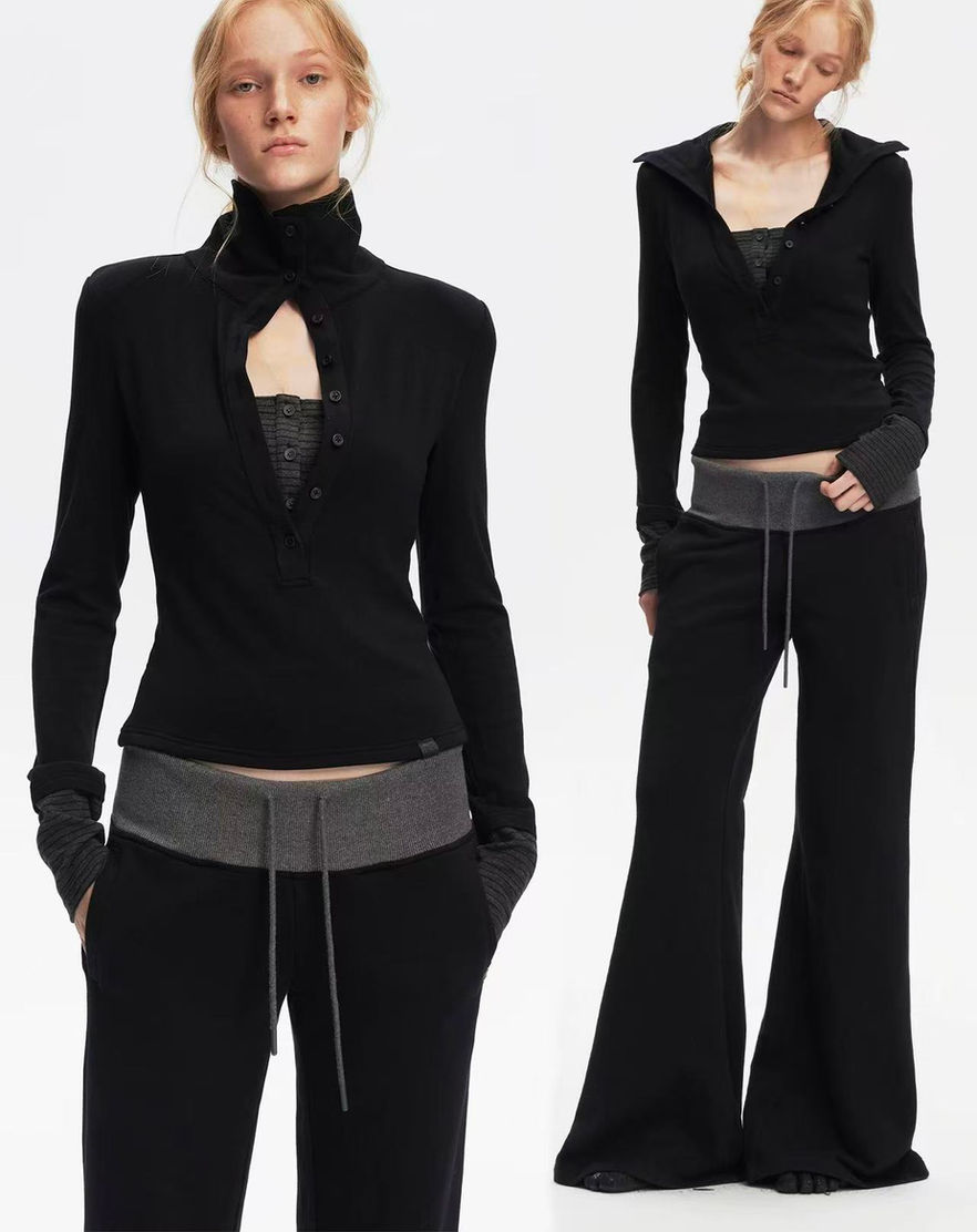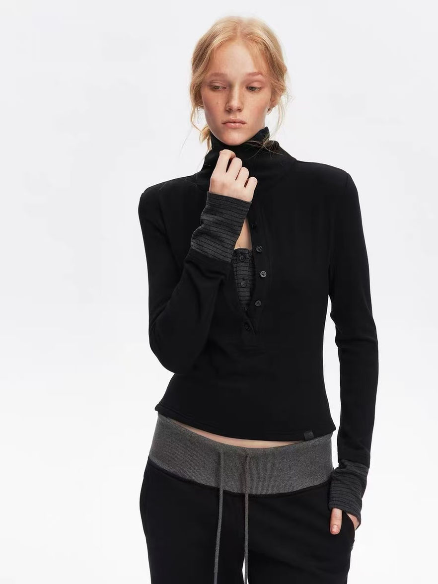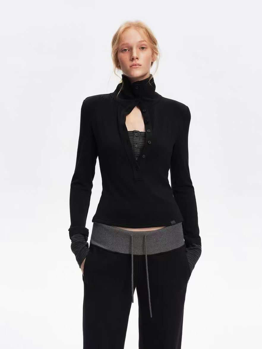 • Structured mock neck that frames the collarbone for a modern, sleek look