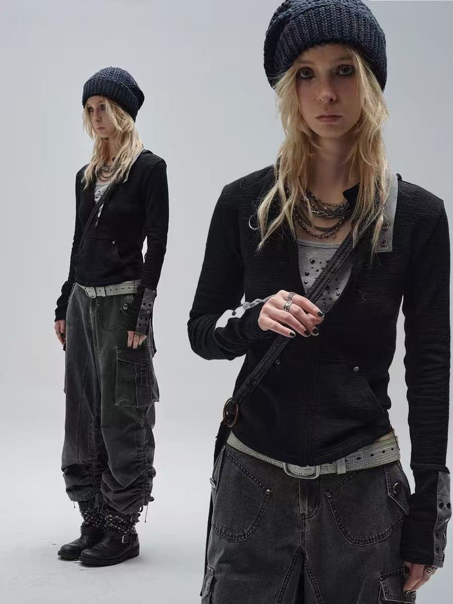 • Punk-inspired stud accents on cuffs