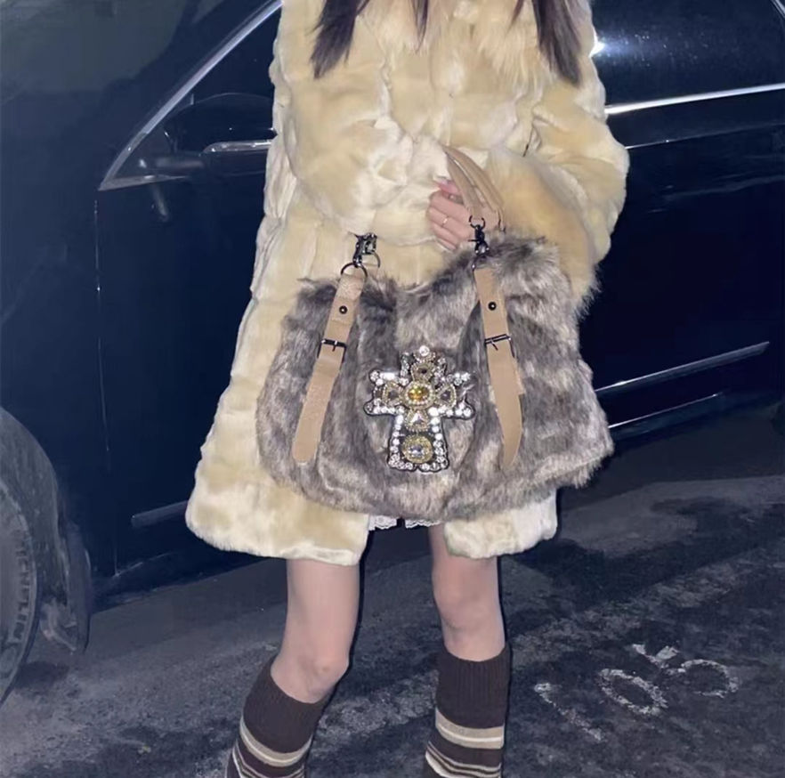 Cross Fur Stone Bag