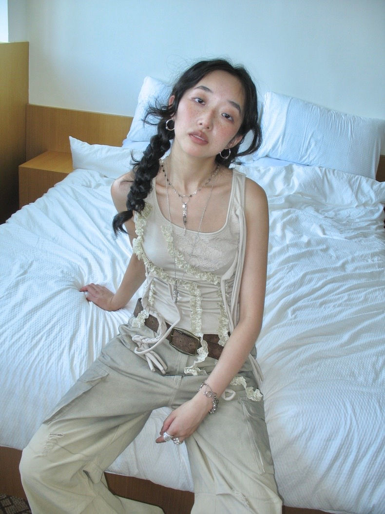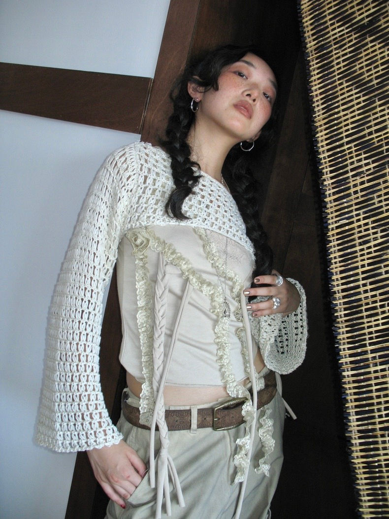 Introducing our Lace Patchwork Camisole with Floral Fringed Tie-Up Detail. This exquisite tank top combines delicate lace accents with charming floral motifs and playful fringed tie-up straps. The intricate lace adds a touch of elegance, while the floral embellishments infuse it with a whimsical flair. The flowing fringe ties add movement and a sense of fun to the piece, making it perfect for both casual outings and special occasions. Whether paired with jeans for a relaxed day out or dressed up with a skirt for a night on the town, this camisole is sure to make a statement wherever you go.